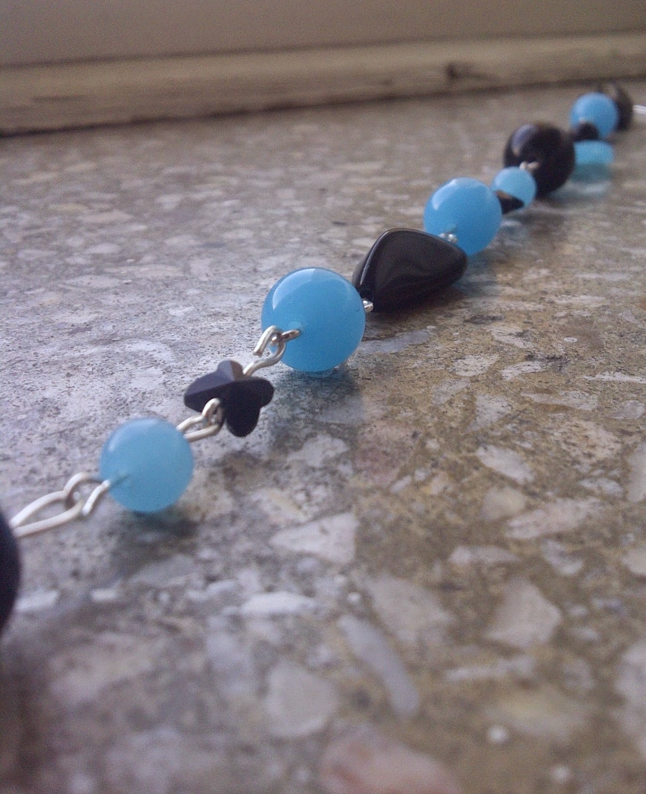 Koraliki szklane (zielone), żywiczne (czerwone) i ceramiczne
